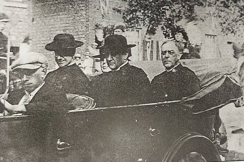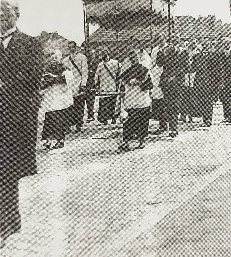 Op de foto: Pastoor Wouters (blootshoofd), voor hem H. Van Reeth (pastoor-deken te Vilvoorde)
